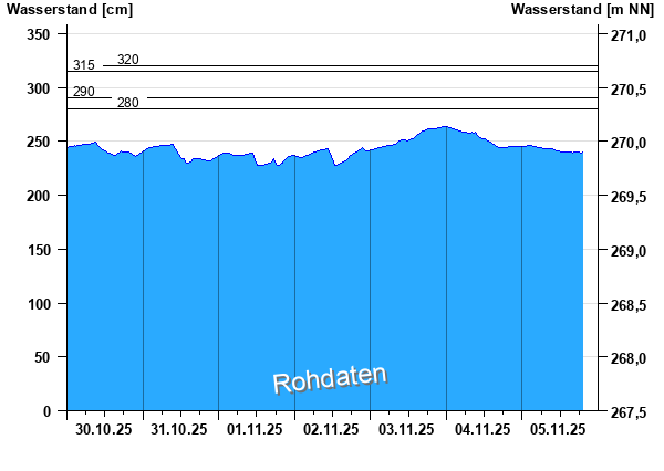 Letzter Messwert vom 05.11.25 17:00 Uhr: 240 cm